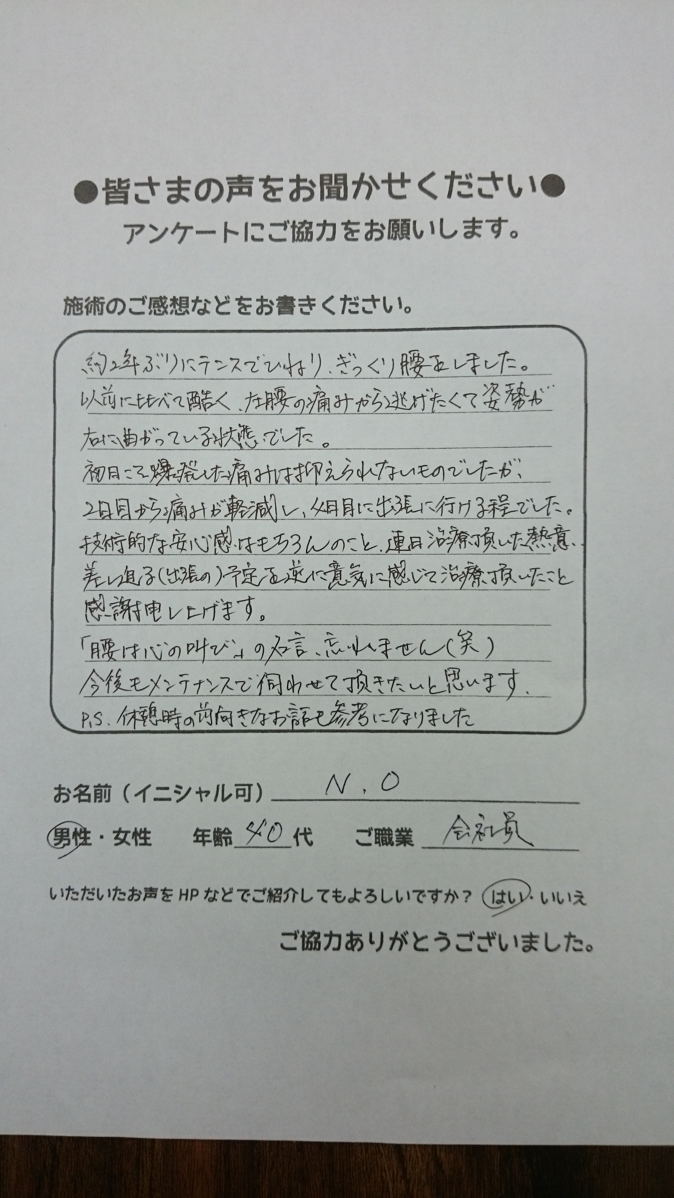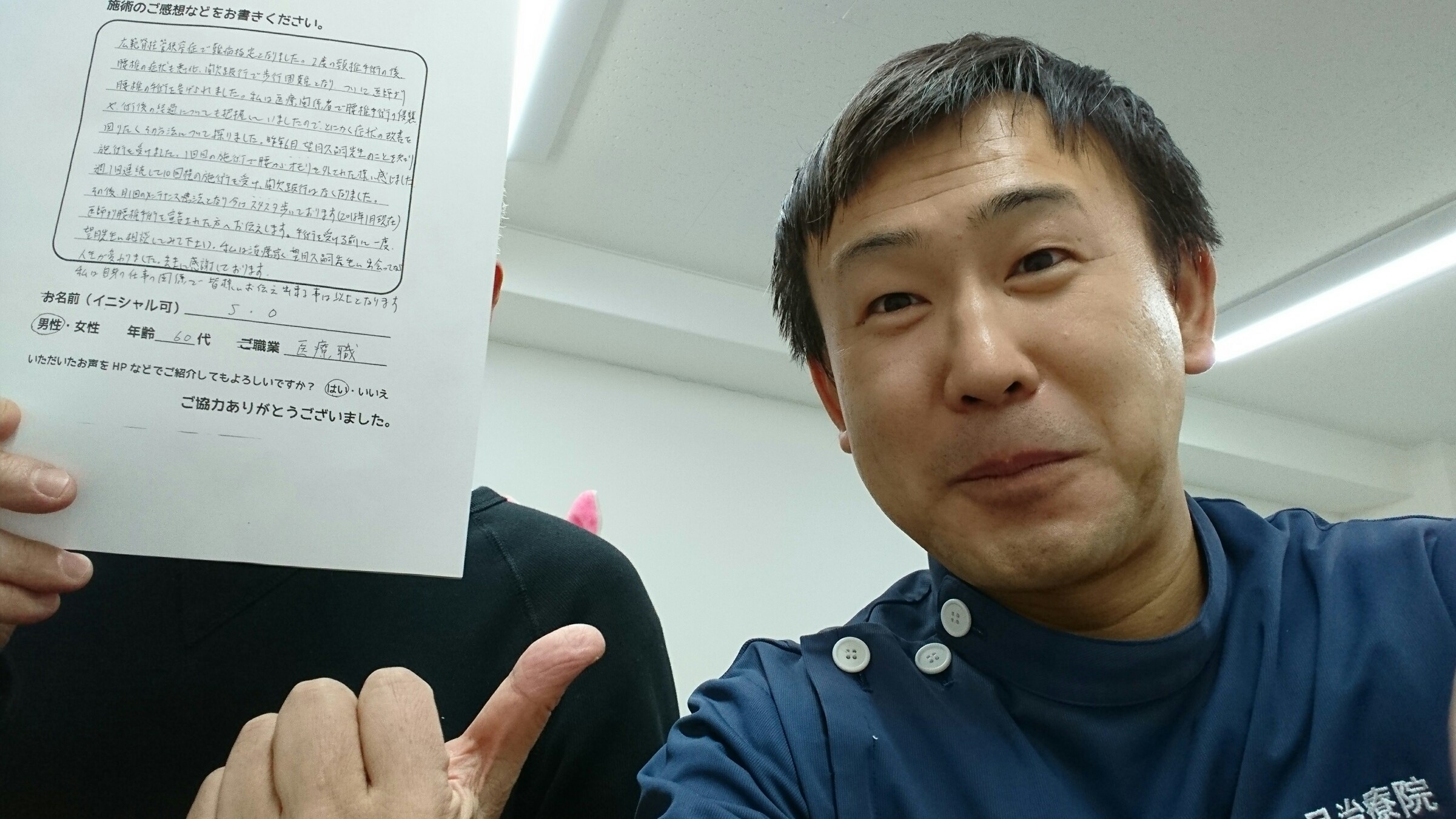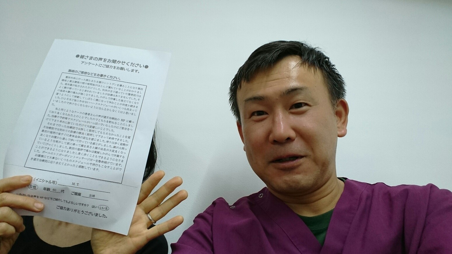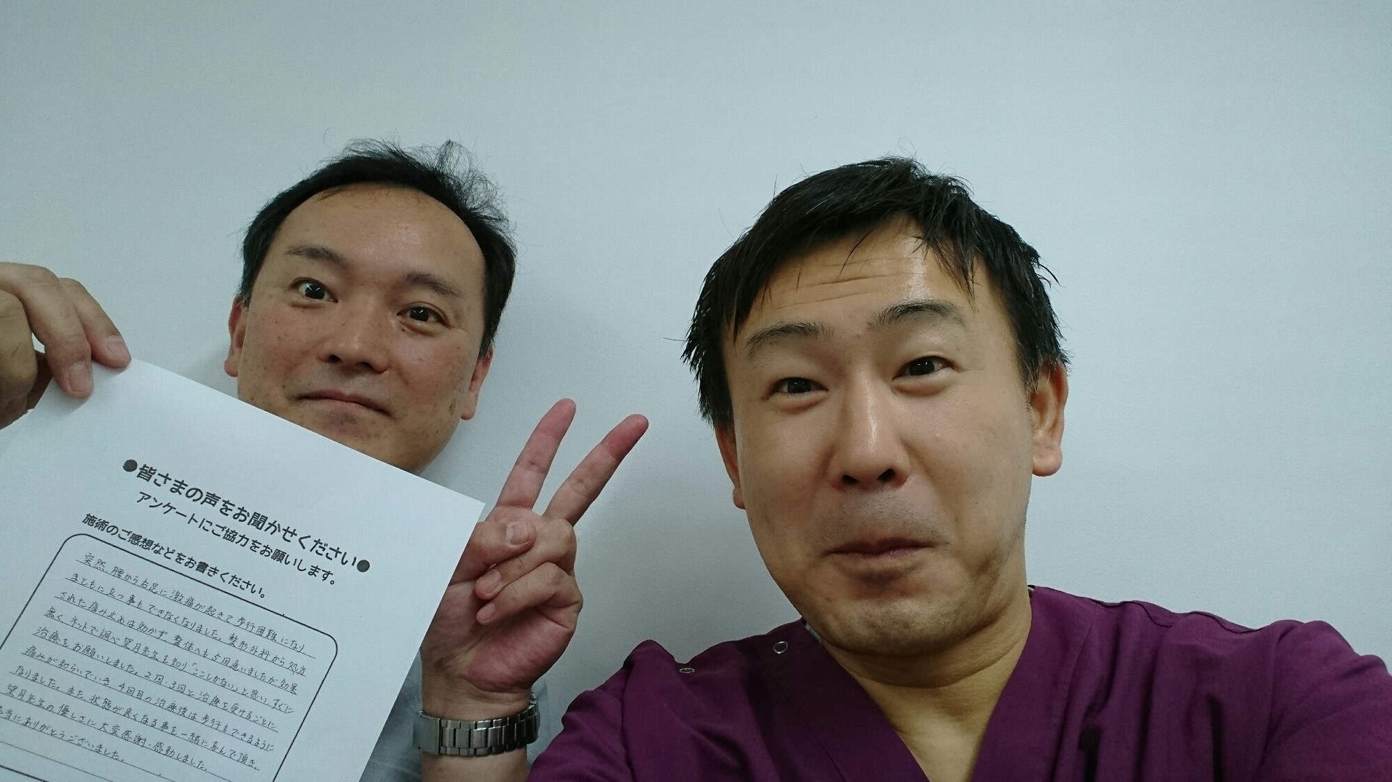 こんにちは!望月治療院の望月です!椎間板ヘルで来院して下さった患者様から治療の感想を頂きました。すっきり治って私も嬉しいです!ご協力頂きましてありがとうございました!60代 男性 M,I様…