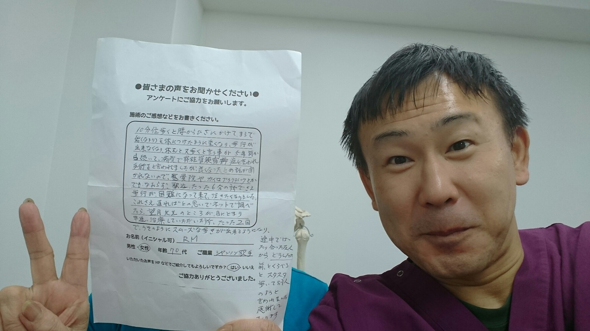 こんにちは!望月治療院の望月です!脊柱管狭窄症、腰椎すべり症で来院して下さった患者様から治療の感想を頂きました。すっきり治って私も嬉しいです!ご協力頂きましてありがとうございました!80…