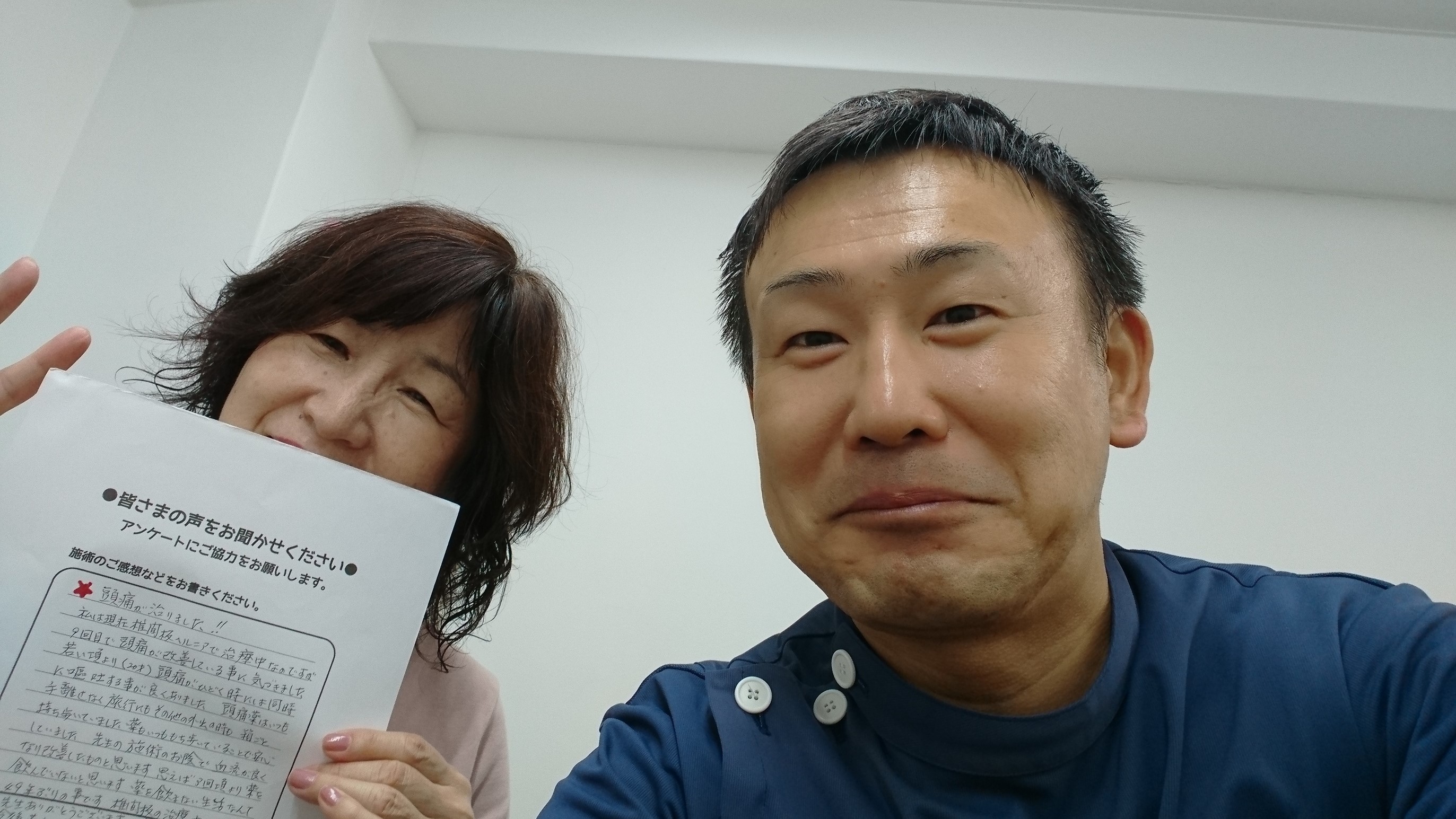 こんにちは!望月です!頭痛の症状でご来院して下さった患者様から、施術の感想を頂きました。数回の施術で長年苦しんでいた頭痛が改善したとの事です。この度は患者様の声にご協力頂きありがとうございま…